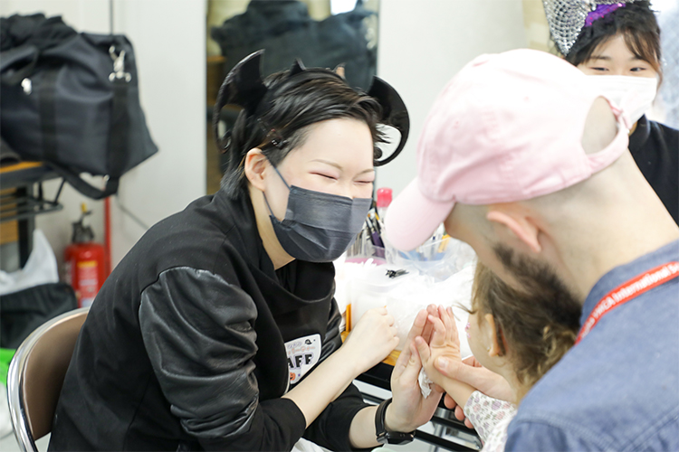 - 施術の際は、子どもたちの個性にあわせて臨機応変に接客するように心がけていました。仕上がったペイントを見た子どもたちから「すごい!」や「めっちゃうまい!」などたくさん嬉しい言葉をもらって、自分自身のモチベーションも上がりました。フェイスペイントのボランティアは、アイラインを描く技術を磨くにはもってこいだと思います。いろいろな世代とふれあえて接客力も身につきますし、楽しみながら技術を磨けるところが魅力ですね。