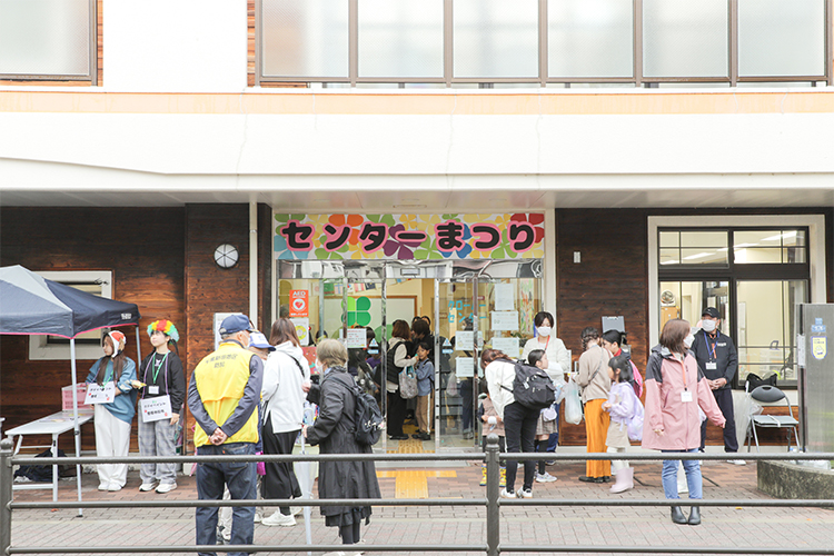 毎年300~400名が来場する「センターまつり」。当日はあいにくの空模様でしたが、開始早々から大勢の子どもたち、親子連れが集まりました。