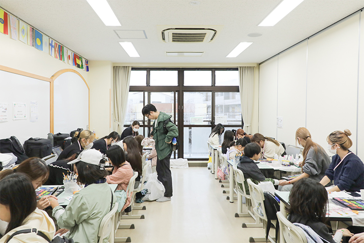 さまざまなエリアでボランティア活動を行っている山口学園ですが、千里・北摂エリアでの活動は今回が初めて。そして、山口学園卒業生のお母様から直接ご依頼いただくのもおそらく初めてではないでしょうか。思わぬところから繋がって実現していく、素敵なご縁を感じずにはいられませんでした。スタッフをしている地域の方々もあたたかく迎えてくださり、会場はとてもアットホームな雰囲気。初めてとは思えないほどのびのびとペイントをする学生たちの姿がとても印象的でした!(ハピボラ編集部)