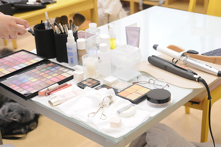 利用者さんの幅広い希望に応えられるように、用意したメイク道具は盛りだくさん。