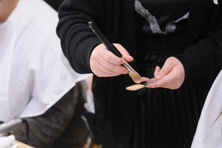 ファンデーションの塗り方やハイライトの塗り方など、実践を見せながら丁寧なアドバイスを意識。