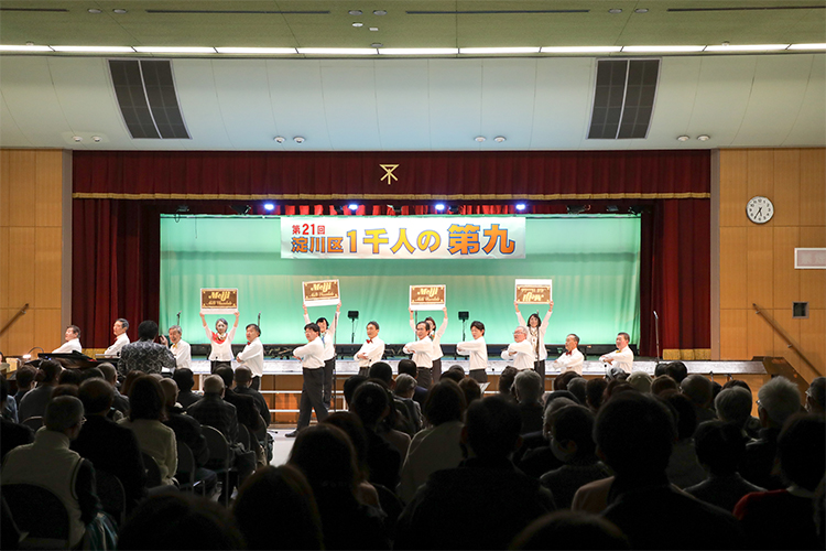 大阪・淀川区で20年以上続いているイベント「淀川区1千人の第九」。国内外で活躍するプロのソリストと、地域の有志メンバーによる「淀川区民合唱団」が一堂に会し、定番の交響曲第九番第4楽章「歓喜の歌」をはじめ、一年を締めくくる多彩な演目で来場者を楽しませています。今回は「昭和100年」の節目に当たることから、昭和のヒット歌謡曲やCMソングメドレーも披露。ユーモアあふれる演出で会場を盛り上げていました。