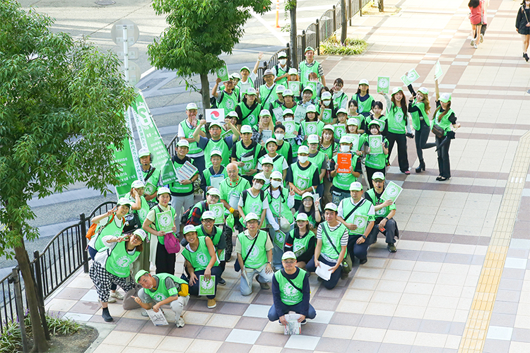 キタ歓楽街環境浄化推進協議会の方々をはじめ、地域の有志ボランティアのみなさんと一緒に活動します。グリーンのビブスが目印!