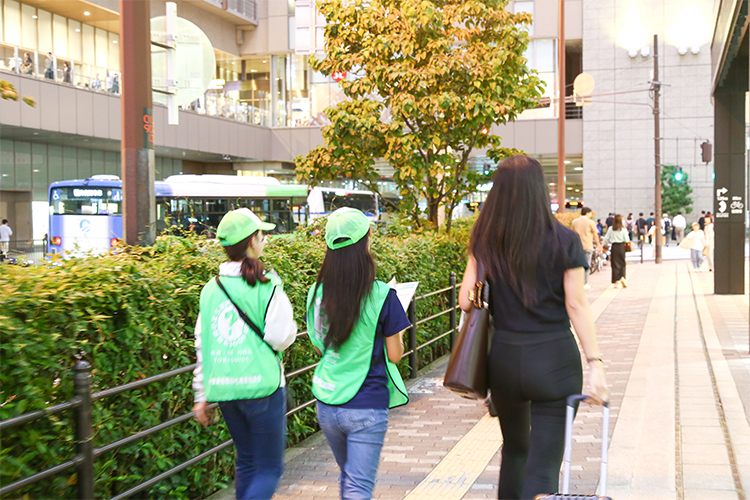 - 道案内は初めてでしたがとても楽しかったです。スマホを触っている人は迷っている確率が高いので、積極的に声をかけていました。一緒に活動したECC国際外語の学生たちとは初対面だったのですが、すぐに打ち解けることができました。ボランティアに参加する学生は話しかけやすい人が多いなぁと改めて思いました。