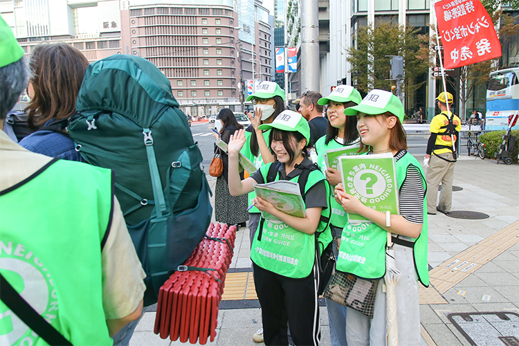 まち案内は3拠点に分かれて行われました。こちらはヨドバシカメラ前の拠点の様子。